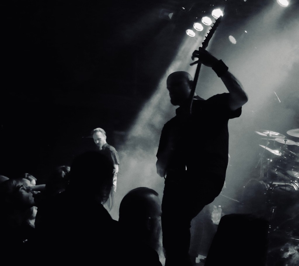 The supergroup The Halo effect which started its creative co-operation during the COVID-19 pandemic with the intention to return to the classical ‘Gothenburg sound’ of the 1990’s. The band consists of Niclas Engelin (lead guitar), Peter Iwers (bass), Mikael Stanne (lead vocals) and Daniel Svensson (drums). Jesper Strömblad on (rhythm guitar) was for this live gig replaced by Patrik Jensen (rhythm guitar). Jesper Strömblad, Peter Iwers and Daniel Svensson have a long co-operation and story together in metalsouth favorite In Flames, Gothenburg (SE). Pioneer bands of the Gothenburg melodic death metal sound normally are referred to as In Flames, At the Gates and Dark Tranquility. At the Gates is said to be the first with its debut album ‘The Red In The Sky is Ours’, which was heavily influenced by among others Entombed from the Stockholm side of the country and Swedish metal sound palettes. This subject demands a separate post and may come later. Mikael Stanne (lead vocals) is today the only remaining founding member of Dark Tranquility, a band still going highly strong and can be read about in other post of this blog. (source: wikipedia)