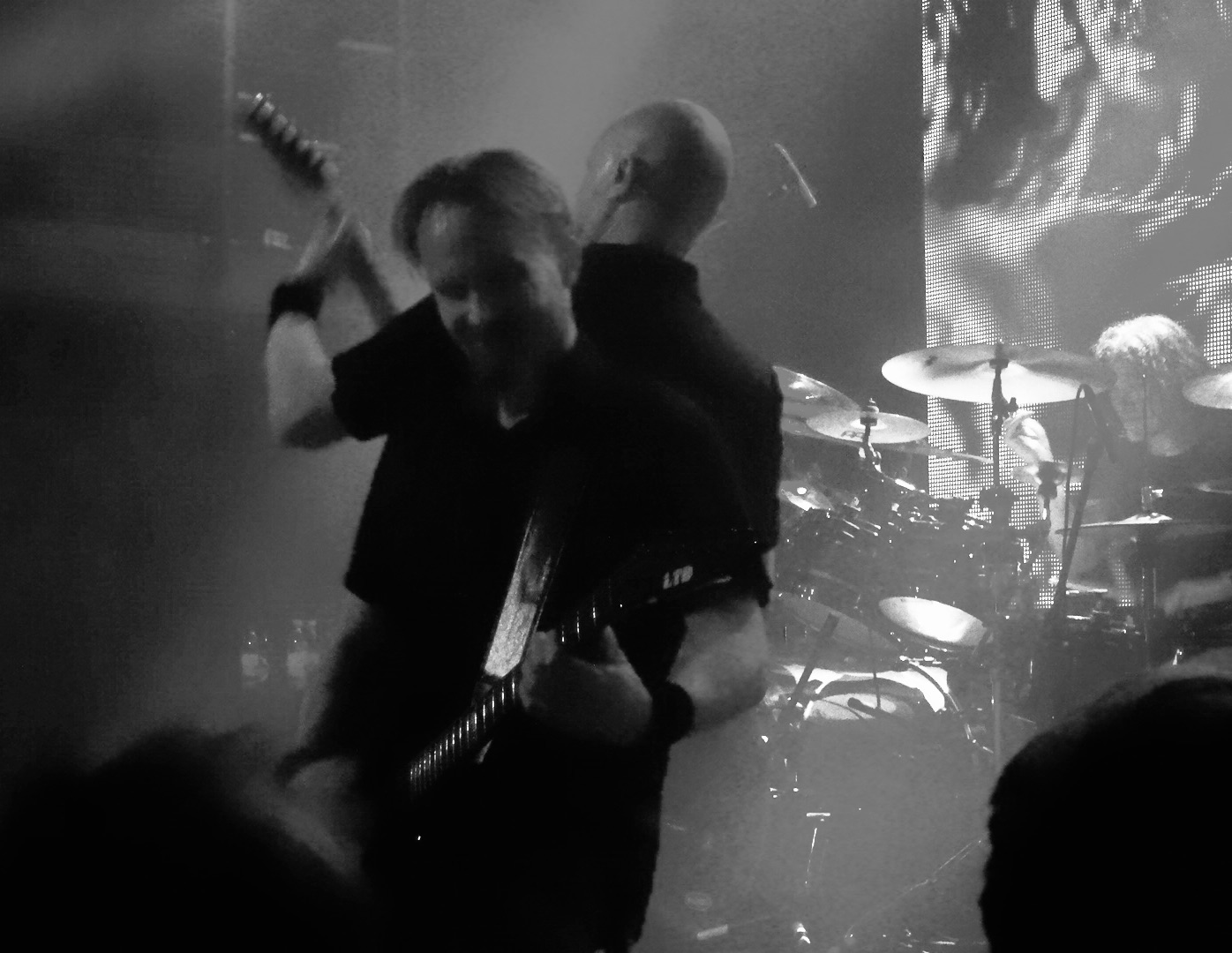 All of a sudden Peter Iwers left the scen and the band was without its bass player. With an audience in suspense for 30 seconds Peter was back with another bass guitar. What happened? It was probably not related to a sound effect, but rather to a broken string.