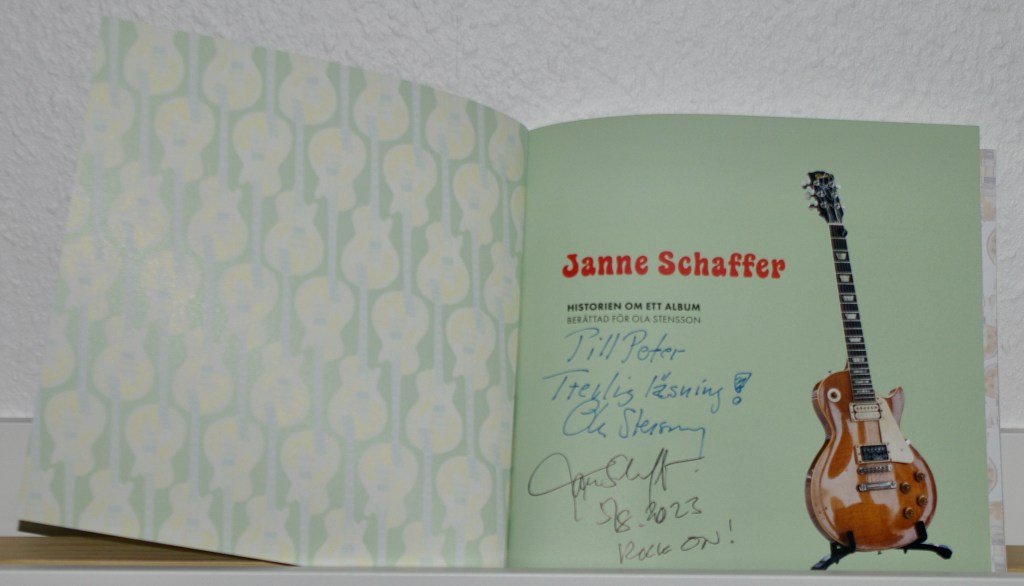 From own collection: Katharsis (CBS, 1976, 81142), Janne Schaffer’s andra LP (Four Leaf, 1974, EFG-501 2106), Janne Schaffer (Four Leaf, 1973, EFG-7232), Janne Schaffer, Historien om ett album/Berättad för Ola Stensson, MoBeVe, 2023), Janne Schaffer (Four Leaf, 2023, PGMLLP, re-master, signed by Janne)Janne Schaffer – Historien om ett album – berättad för Ola Stensson MoBeVe, 2023, signed by Ola and Janne)